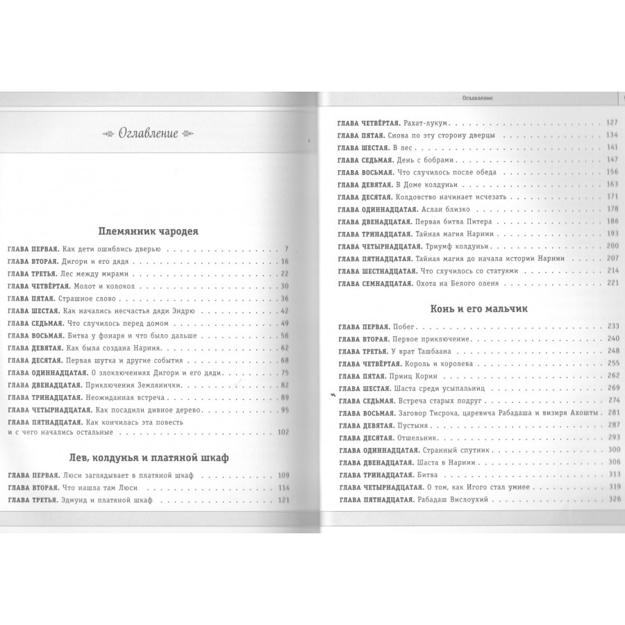 В этой книге собраны все 7 повестей легендарного цикла «Хроники Нарнии»: «Племянник чародея», «Лев, колдунья и платяной шкаф», «Конь и его мальчик», «Принц Каспиан», «"Покоритель зари", или Плавание на край света» и другие.