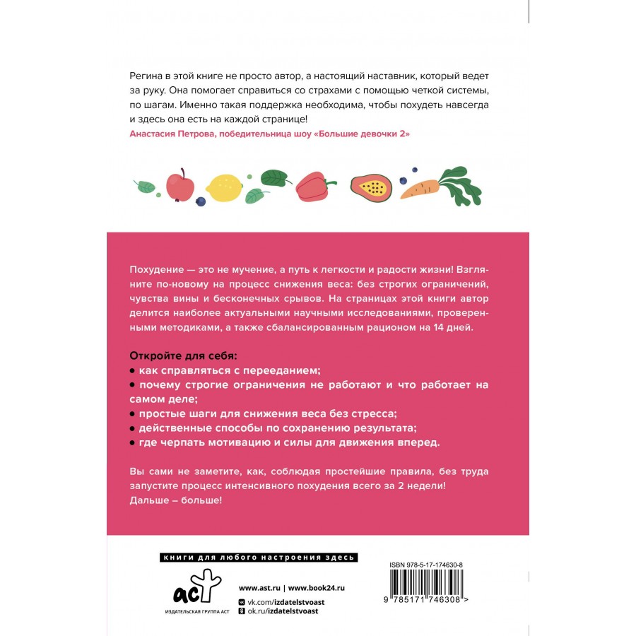 Похудение — это не мучение, а путь к лёгкости и радости жизни! Взгляните по-новому на процесс снижения веса: без строгих ограничений, чувства вины и бесконечных срывов. На страницах этой книги автор делится наиболее актуальными научными исследованиями, проверенными методиками, а также сбалансированным рационом на 14 дней. Откройте для себя: