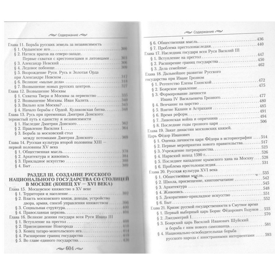 Данное издание охватывает время от предыстории народов на территории Восточной Европы и происхождения славян, через формирование Древнерусского государства и эпоху Ярослава Мудрого до периода политической раздробленности. Особое внимание уделяется монголо-татарскому нашествию и ордынскому владычеству, борьбе русских земель за независимость, возвышению Москвы как центра объединения, а также созданию русского национального государства в XV–XVI веках при Иване III, Василии III и Иване Грозном, включая драматичекий период опричнины и Смутного времени.