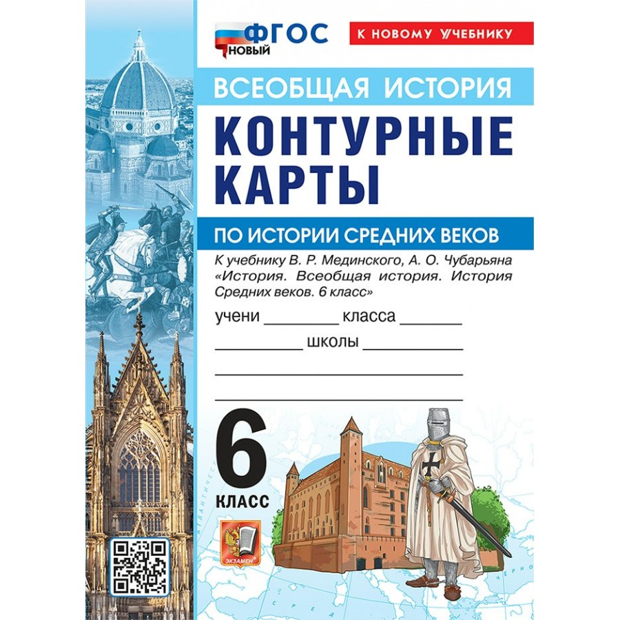 История Средних веков 6 класс. Контурные карты к учебнику В. Р. Мединского, А. О. Чубарьяна. К новому учебнику. 2026. Контурная карта. Экзамен
