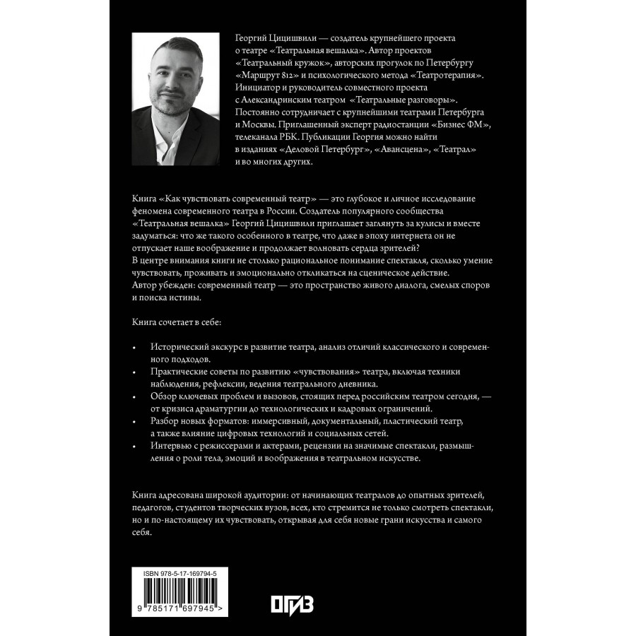 Книга "Как чувствовать современный театр" — это глубокое и личное исследование феномена современного театра в России. Создатель популярного сообщества "Театральная вешалка" Георгий Цицишвили приглашает заглянуть за кулисы и вместе задуматься: что же такого особенного в театре, что даже в эпоху интернета он не отпускает наше воображение и продолжает волновать сердца зрителей?