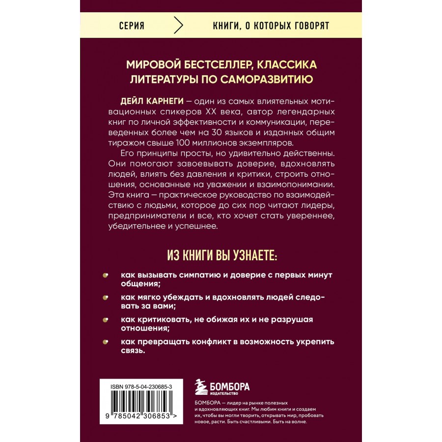 Его принципы просты, но удивительно действенны. Они помогают завоевывать доверие, вдохновлять людей, влиять без давления и критики, строить отношения, основанные на уважении и взаимопонимании. Эта книга — практическое руководство по взаимодействию с людьми, которое до сих пор читают лидеры, предприниматели и все, кто хочет стать увереннее, убедительнее и успешнее.