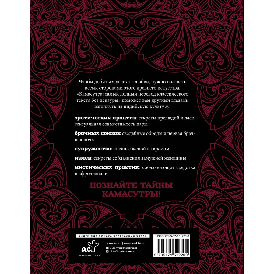Чтобы добиться успеха в любви, нужно овладеть всеми сторонами этого древнего искусства. "Камасутра: самый полный перевод классического текста без цензуры" поможет вам другими глазами взглянуть на индийскую культуру: