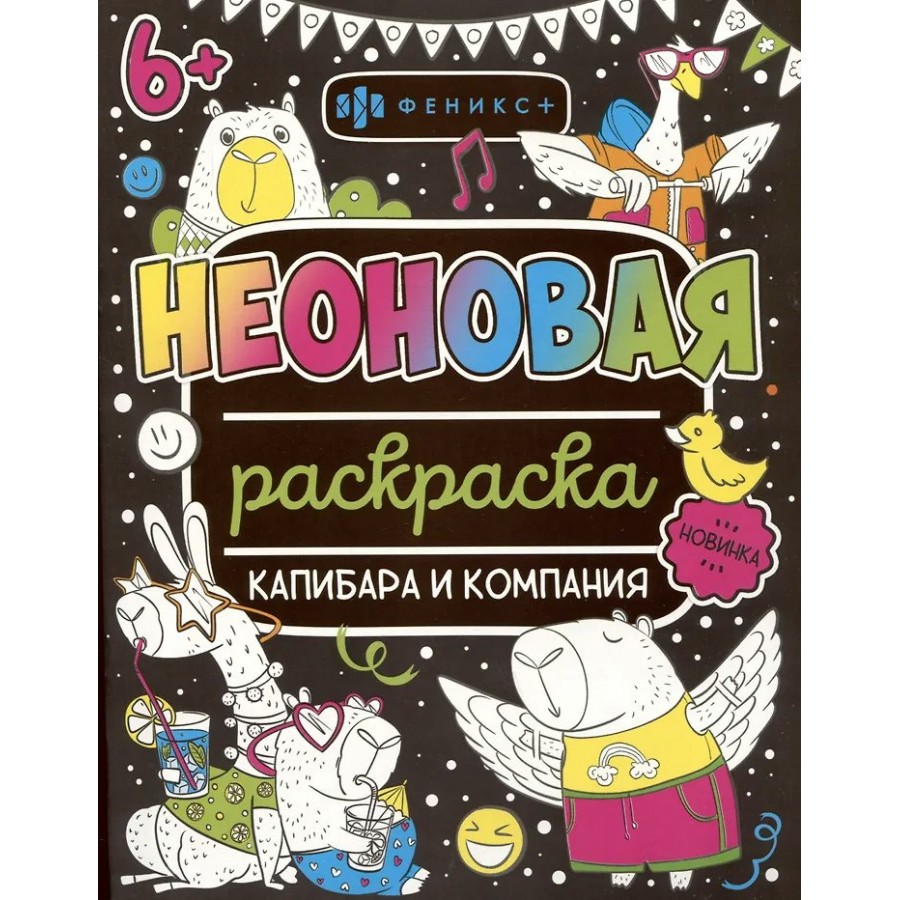 Вашему вниманию предлагается неоновая раскраска Капибара и компания