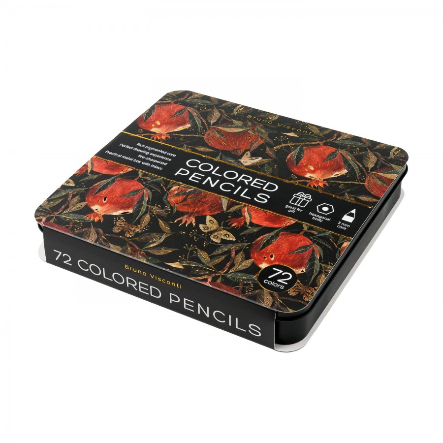 Карандаши цветные 72шт Flora Гранат пластиковые, в металлической коробке 30-0158/02 Bruno Visconti