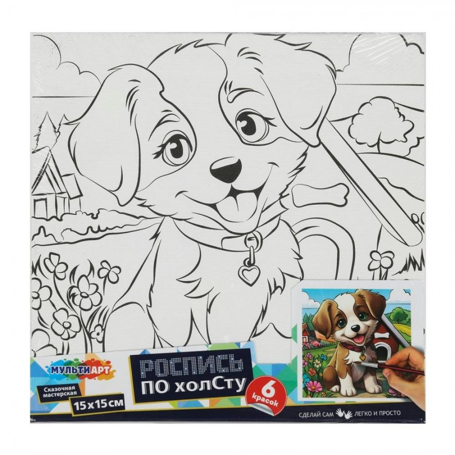 Набор для творчества - роспись по холсту «Щенок у будки» из серии «Сказочная мастерская» ТМ «Мульти Арт» станет отличным подарком для юных художников: