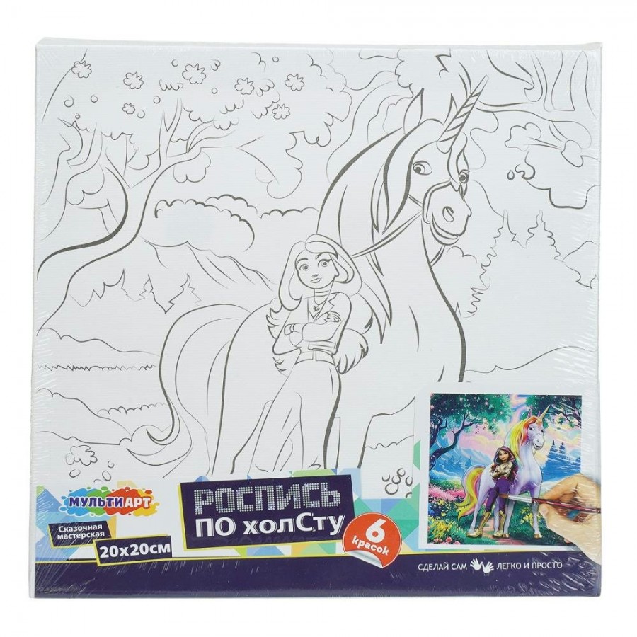Ребёнок увлекательно и полезно проведёт время, расписывая холст с изображением ученицы Академии и её единорога. Картинку на лицевой стороне упаковки можно использовать в качестве образца, а можно подобрать цвета по своему усмотрению. Готовую картину можно использовать для украшения комнаты или в качестве подарка, сделанного своими руками.