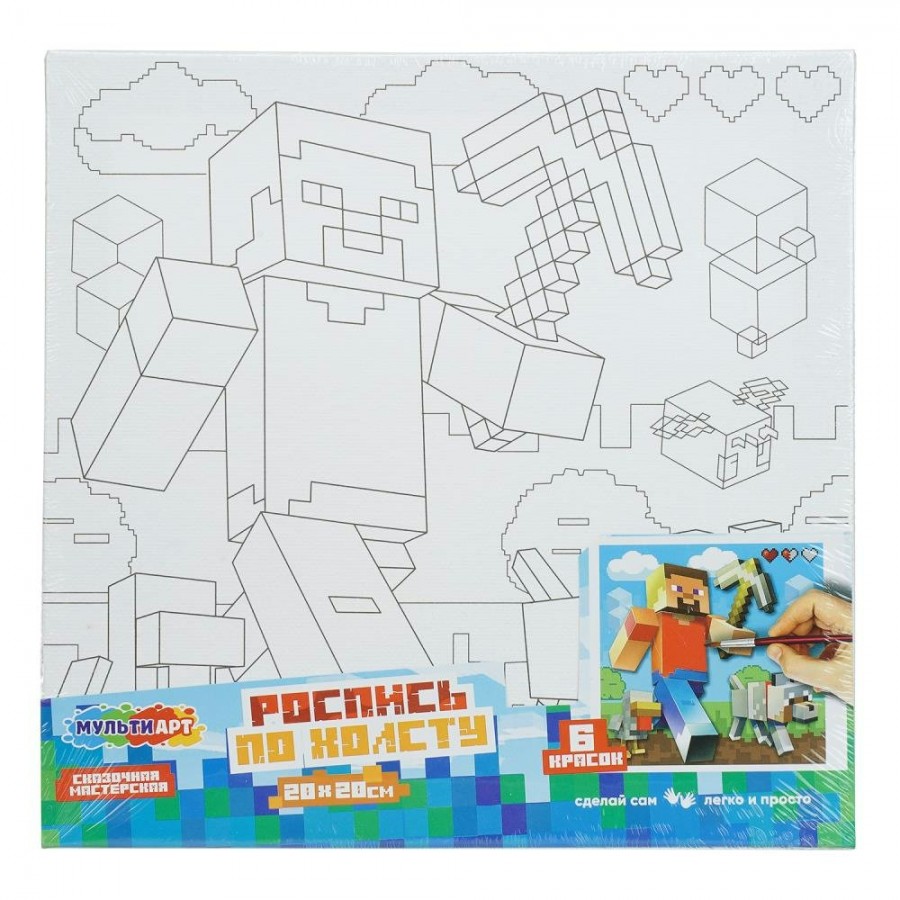 Ребёнок увлекательно и полезно проведёт время, расписывая холст с изображением персонажа популярной видеоигры про виртуальный квадромир. Картинку на лицевой стороне упаковки можно использовать в качестве образца, а можно подобрать цвета по своему усмотрению. Готовую картину можно использовать для украшения комнаты или в качестве подарка, сделанного своими руками.