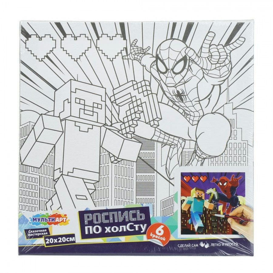 Набор для творчества - роспись по холсту «Спайдер и квадратный мир» ТМ «Мульти Арт» - отличный подарок для маленького художника.