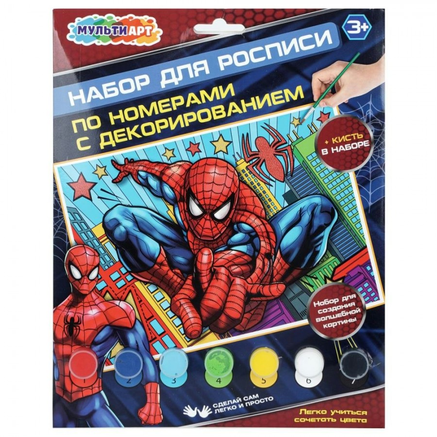 Набор для творчества - холст для росписи по номерам с декорированием «Спайдер» ТМ «Мульти Арт» - отличный подарок для маленького художника.