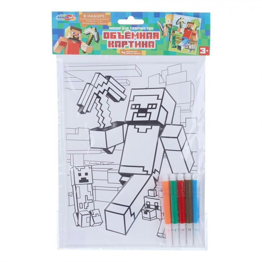 Картина по контурам на картоне объемная Майнкрафт + 5 фломастеров VMP-128164 МультиАрт
