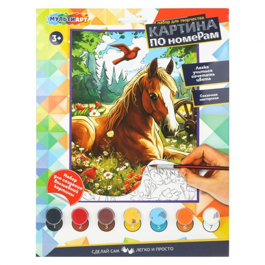Набор для творчества — картина по номерам «Лошадка в поле» ТМ «Мульти Арт» — отличный подарок для ребёнка, который будет способствовать развитию его творческих способностей.