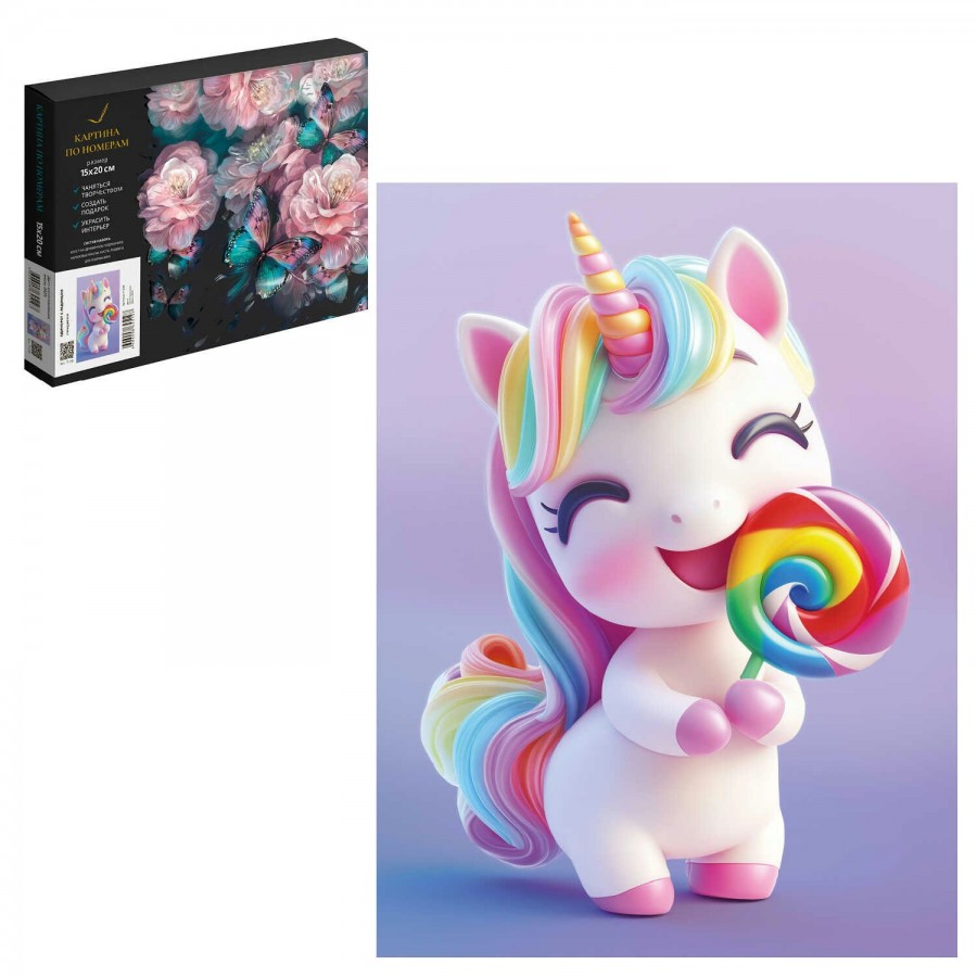 Картина по номерам холст на подрамнике 15х20 Единорог с леденцом 15 цветов 71240 Феникс