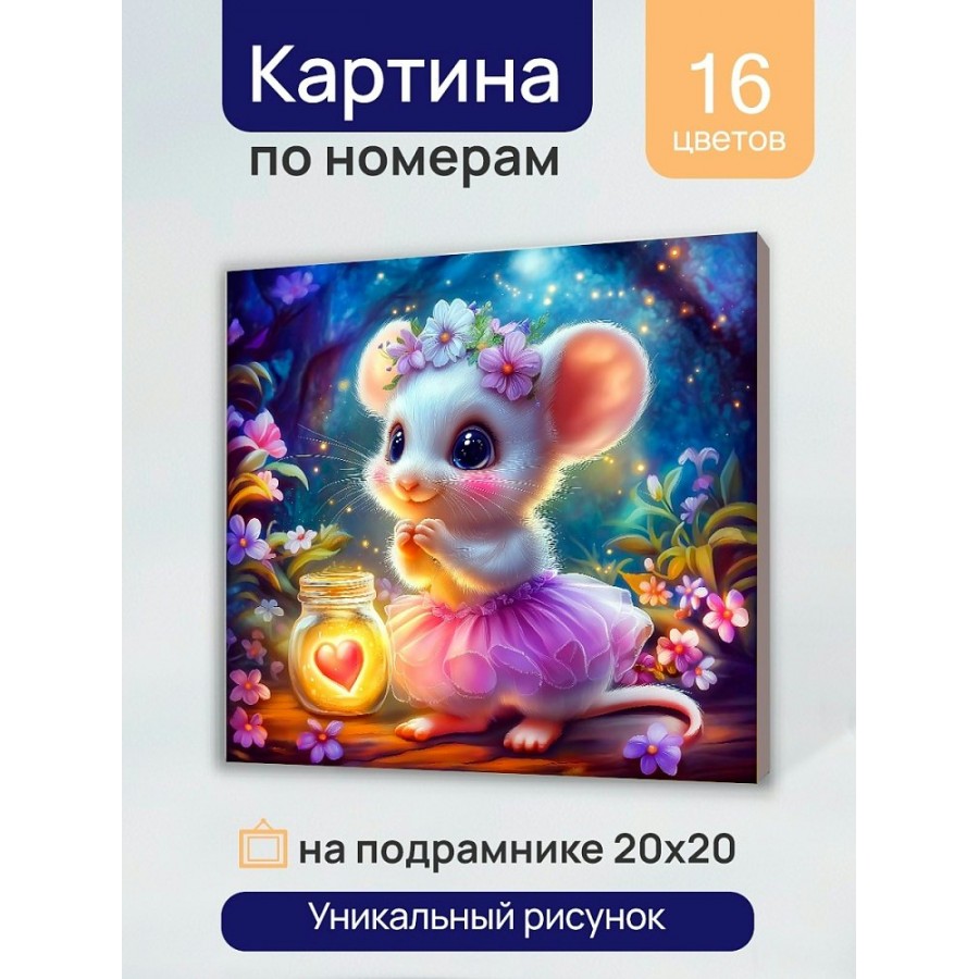 Картина по номерам холст на подрамнике 20х20 Мышка в волшебном лесу 16 цветов Х-0748 Рыжий кот