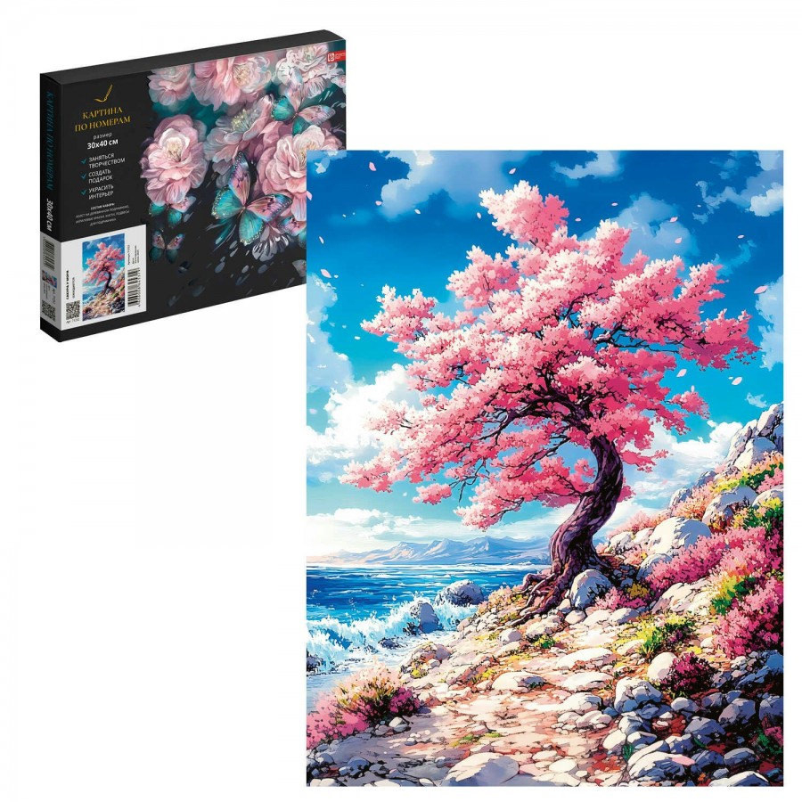 Набор для творчества Картина по номерам арт. 71252 / 24 САКУРА У МОРЯ, размер: 30х40 см, (20 цвета (-ов), холст на деревянном подрамнике с напечатанной схемой рисунка, контрольный лист с нанесенной схемой, краски акриловые на водной основе (упакованы в вакуумную упаковку), кисти художественные с ворсом из нейлона – 4 шт., подвесы для подрамника, пакет на zip-молнии, лак в комплекте, картонная коробка с ручкой)