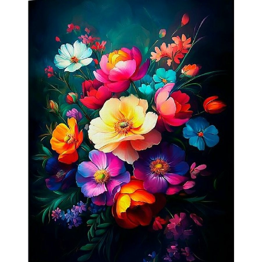 Картина по номерам холст на подрамнике 30х40 Цветы на темном фоне 30 цветов ХК-3271 Рыжий кот