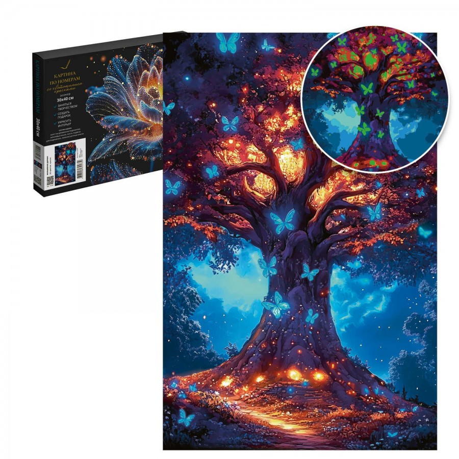 Картина по номерам холст на подрамнике 30х40 Волшебное дерево 20 цветов, со светящимися красками 71294 Феникс