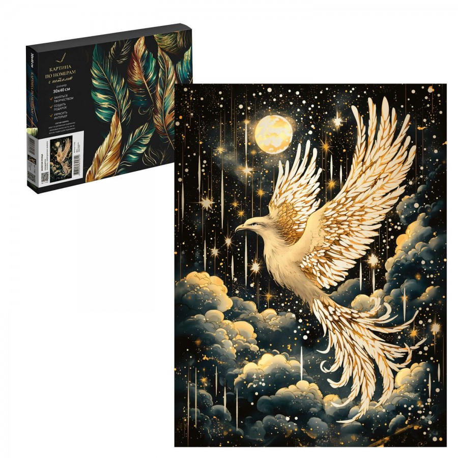 Картина по номерам холст на подрамнике 30х40 Золотая птица с поталью на черном холсте, 17 цветов 71302 Феникс
