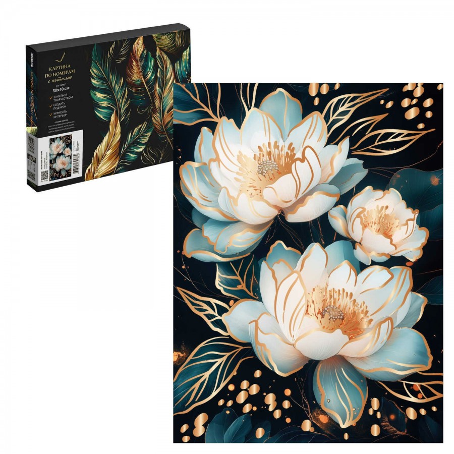 Картина по номерам холст на подрамнике 30х40 Золотые лотосы с поталью на черном холсте, 18 цветов 71299 Феникс