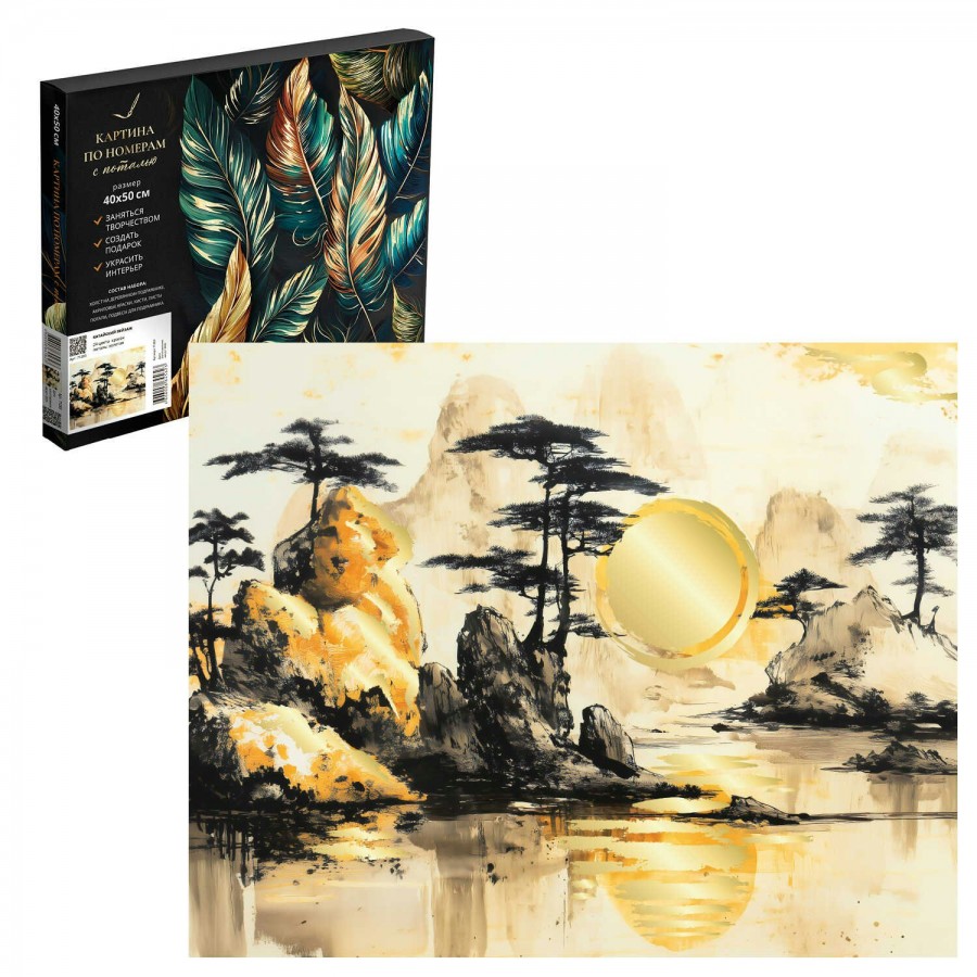 Набор для творчества Картина по номерам с поталью арт. 71283 / 16 КИТАЙСКИЙ ПЕЙЗАЖ, размер: 40х50 см, (24 цвета (-ов), холст на деревянном подрамнике с напечатанной схемой рисунка, краски акриловые на водной основе (упакованы в вакуумную упаковку), кисти художественные с ворсом из нейлона – 4 шт., поталь, клей для потали, лак, пакет на zip-молнии, подвесы для подрамника, контрольный лист с нанесенной схемой в комплекте, поталь: золотая, картонная коробка с ручкой)