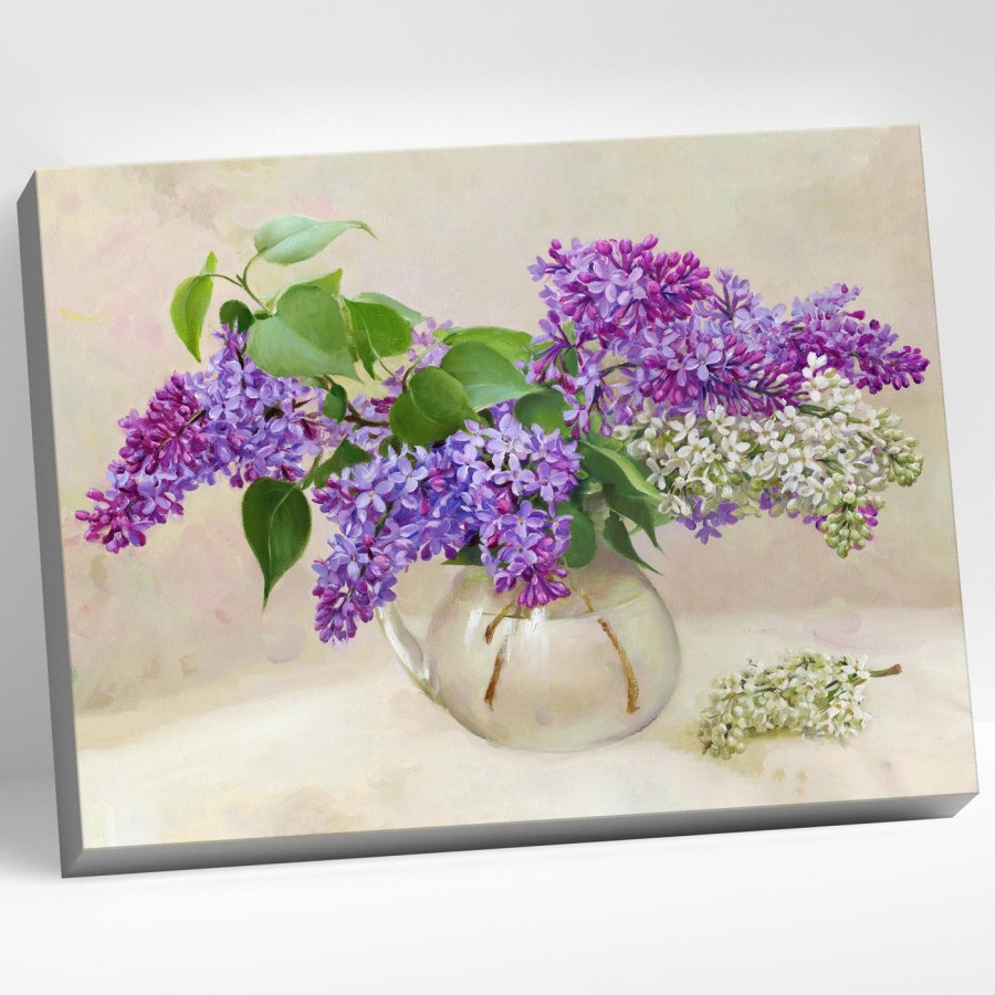 Картина по номерам холст на подрамнике 40х50 Ветка сирени Бузин 29 цвета HR0738 Молли