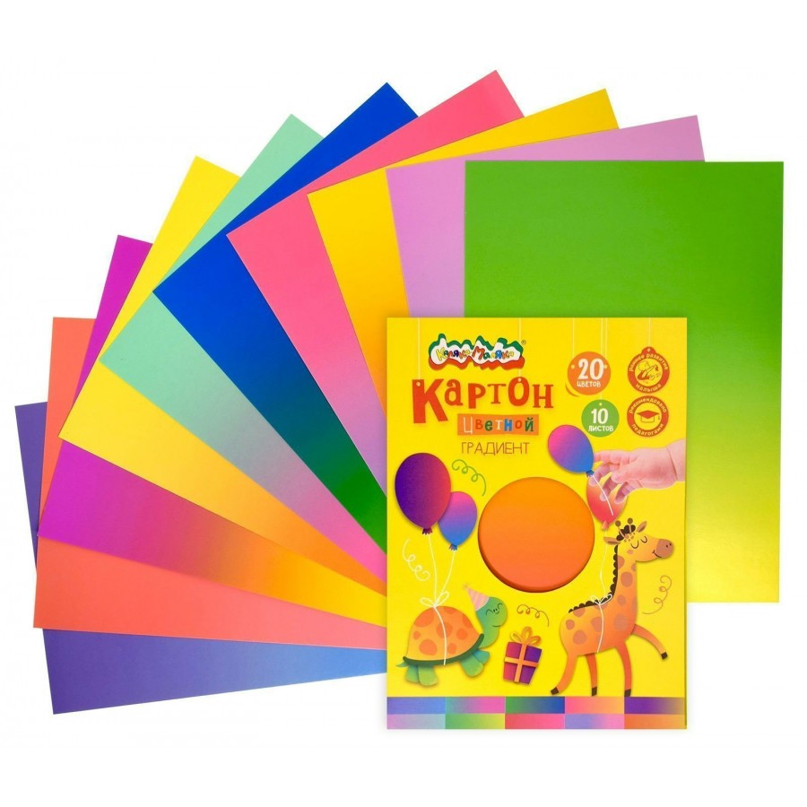 Картон цветной А4 200х280 10 листов 20 цветов мелованный 200г/м2 градиентный, папка КЦГМКМ10/20 Каляка-Маляка 261932