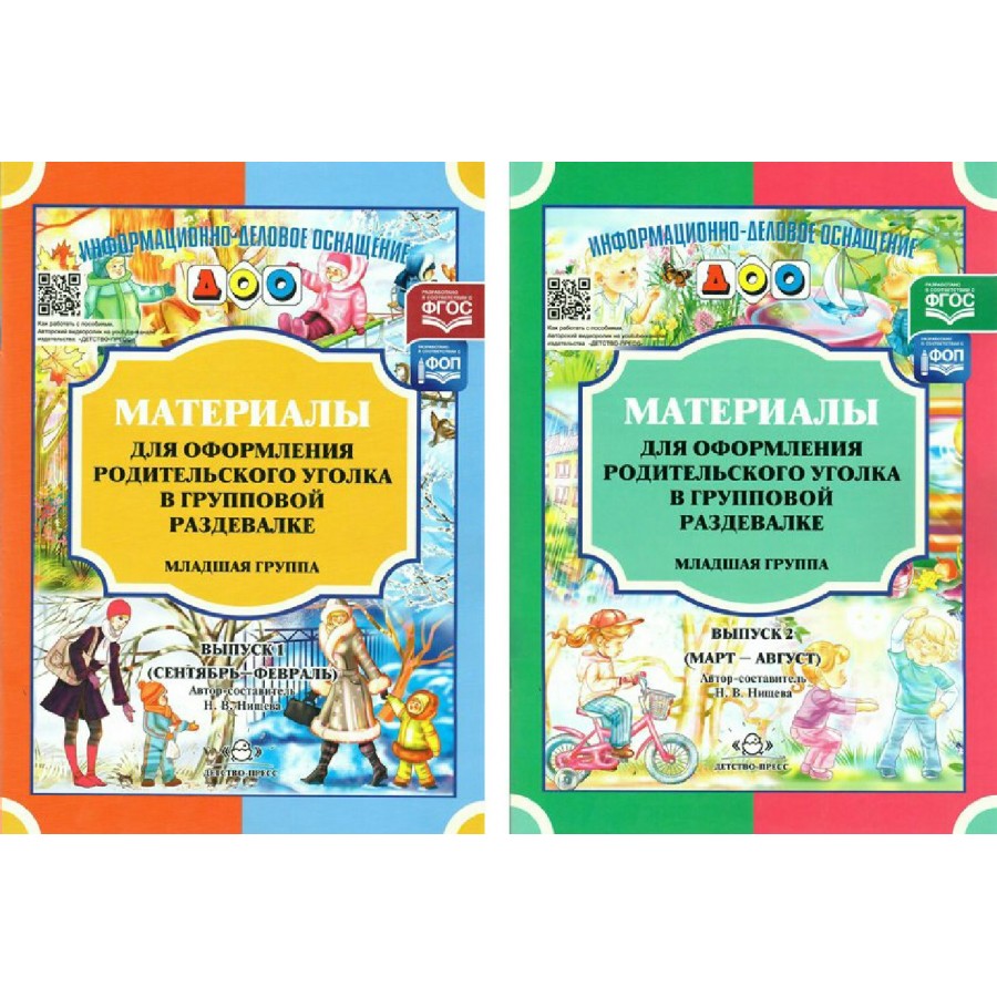 Продолжает выпуск серии "Информационно-деловое оснащение ДОО". Кроме материалов для обшесадовских стендов теперь это и сменный материал для родительских уголков в групповых помещениях. В данном выпуске представлены материалы для родительского уголка в младшей группе детского сада с сентября по февраль включительно.