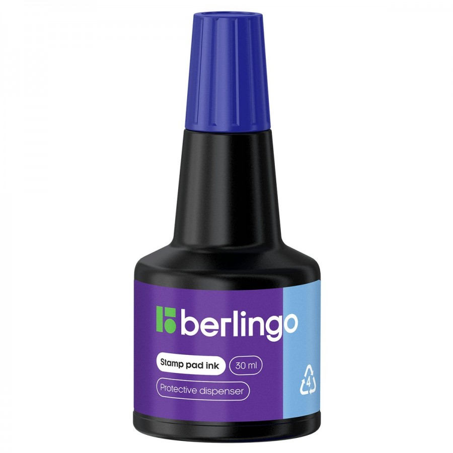 Штемпельная краска на водной основе для заправки штемпельных подушек. Цвет краски - синий. Объем 30 мл. Флакон оснащен дозатором и упакован в индивидуальную коробочку.