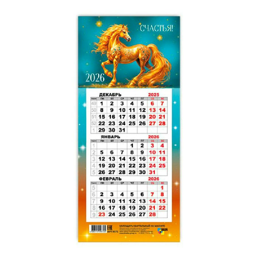 Квадра/Календарь настенный квартальный 3 блочный мини на магните 2026. Символ года 245 х 110/9372/