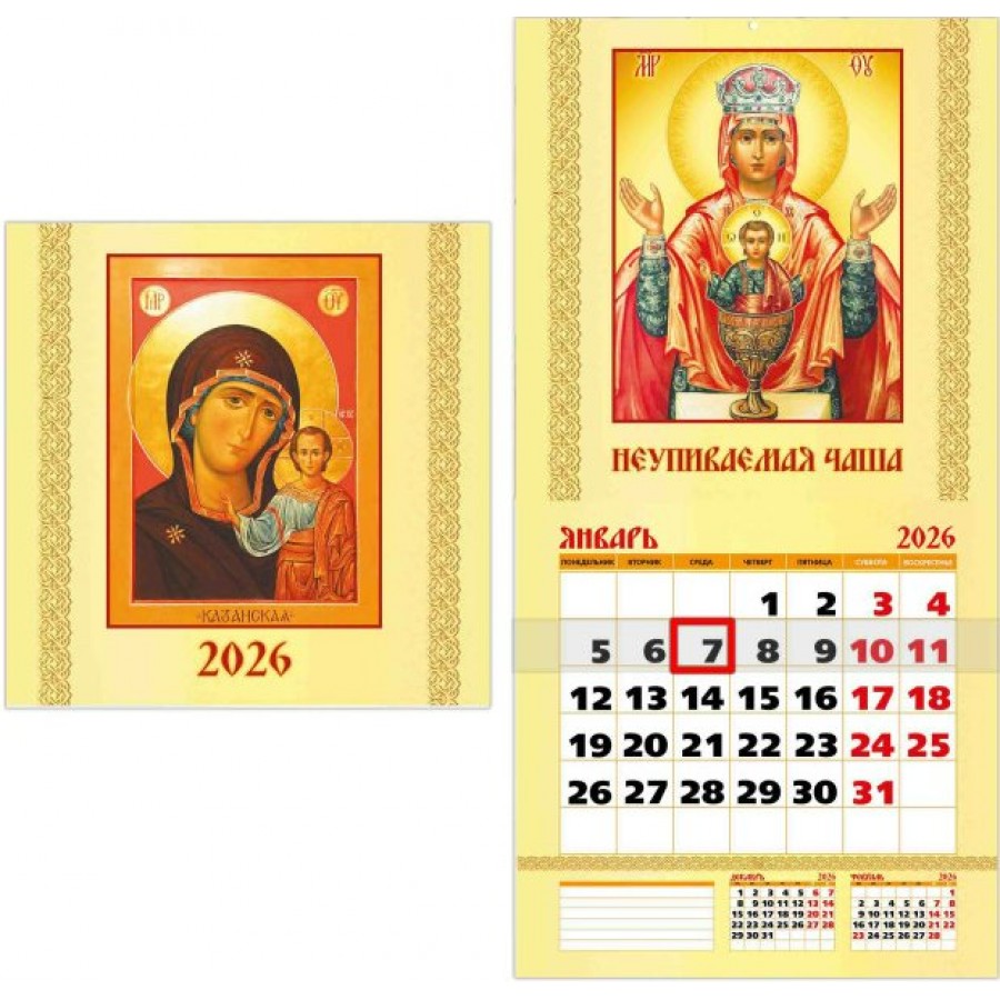 Квадра/Календарь настенный перекидной на скрепке с курсором 2026. Православный 230 х 230/9787/