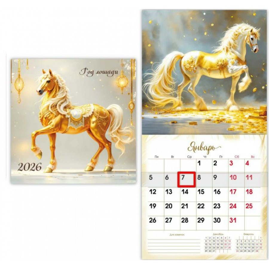 Квадра/Календарь настенный перекидной на скрепке с курсором 2026. Символ года 290 х 290/9773/