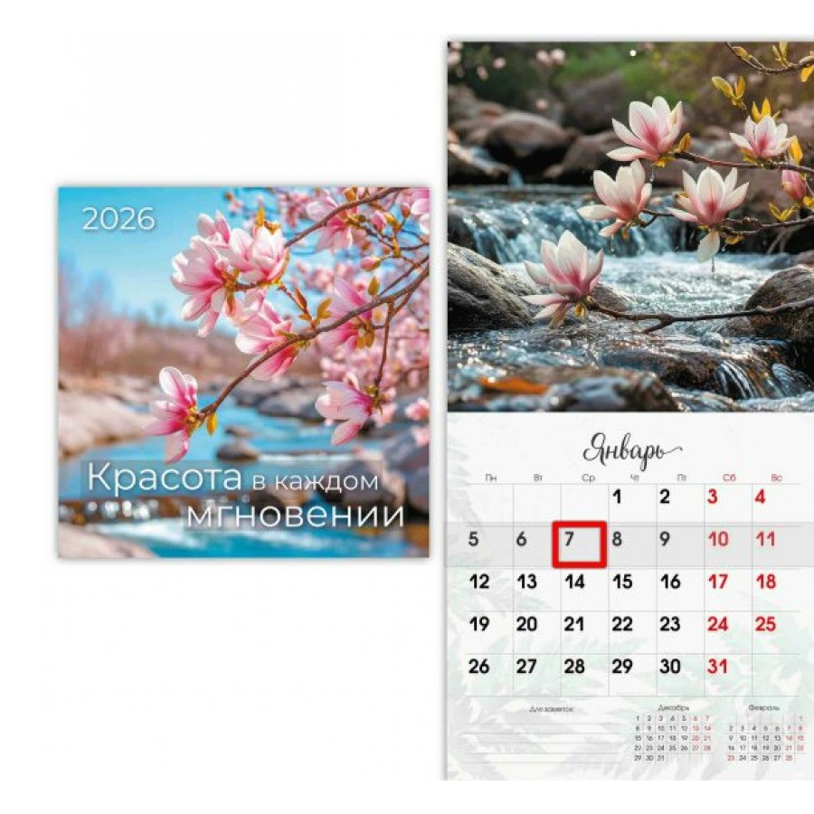 Квадра/Календарь настенный перекидной на скрепке с курсором 2026. Цветы 290 х 290/9761/