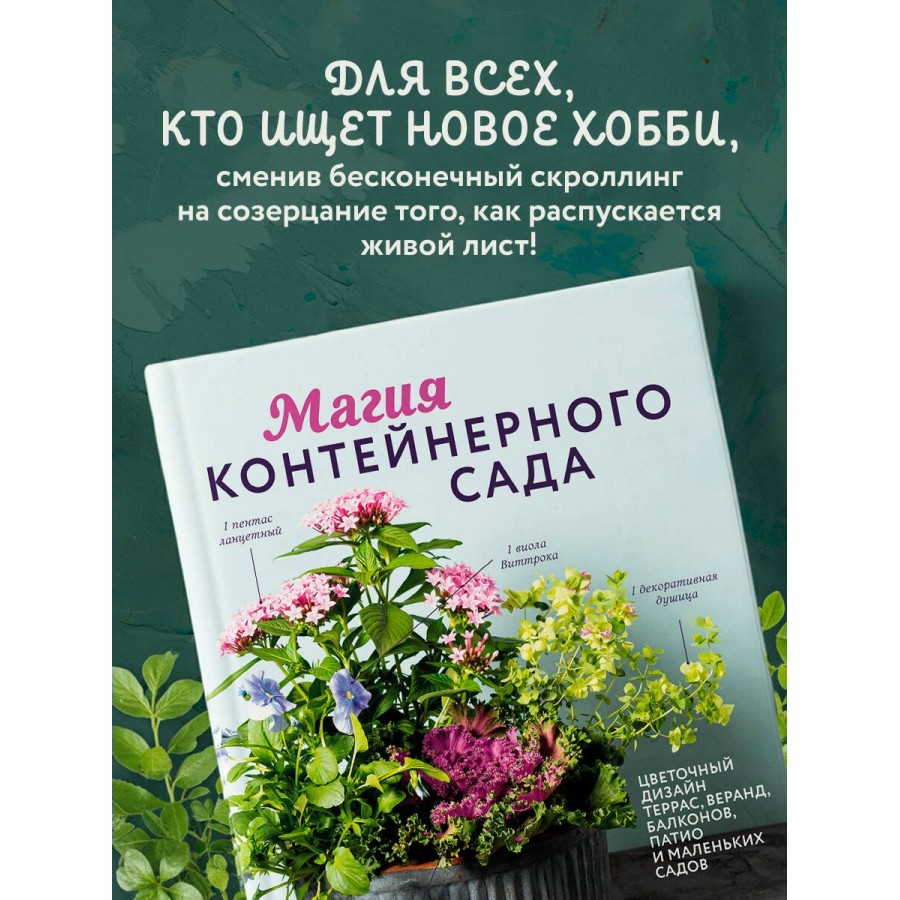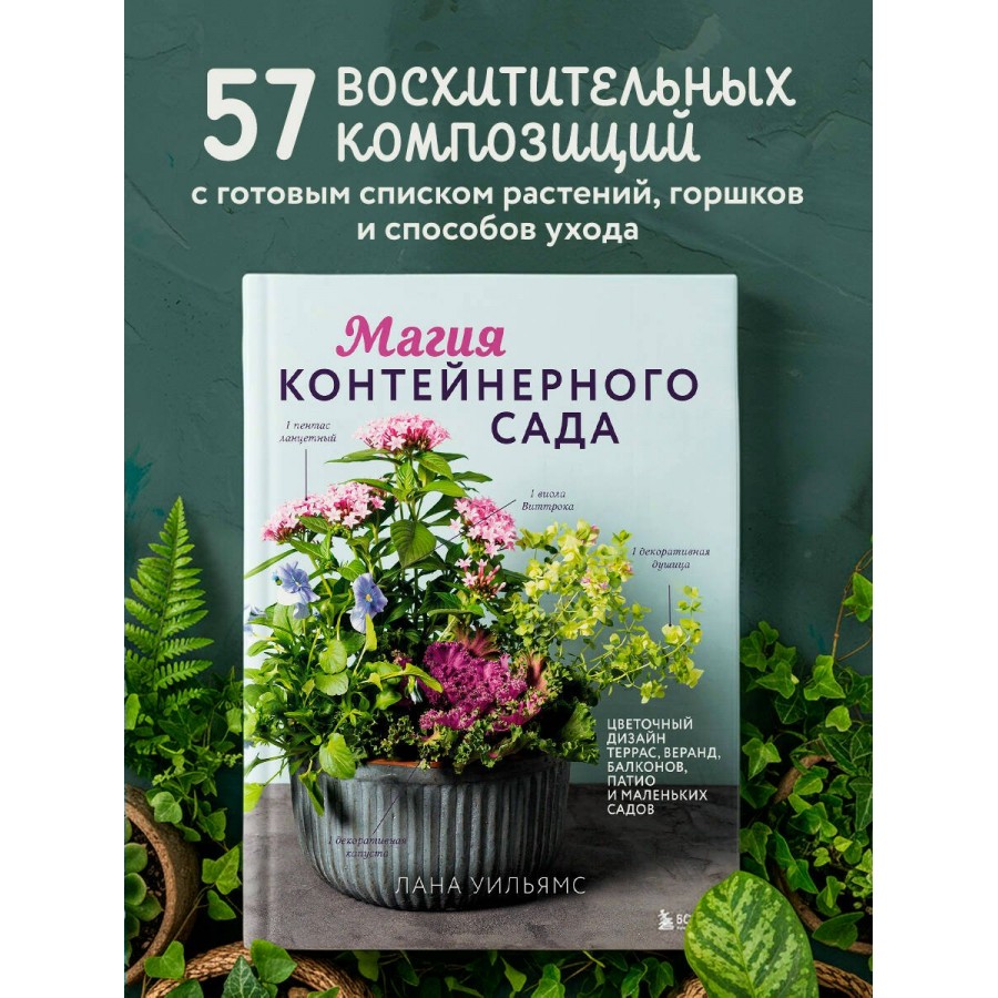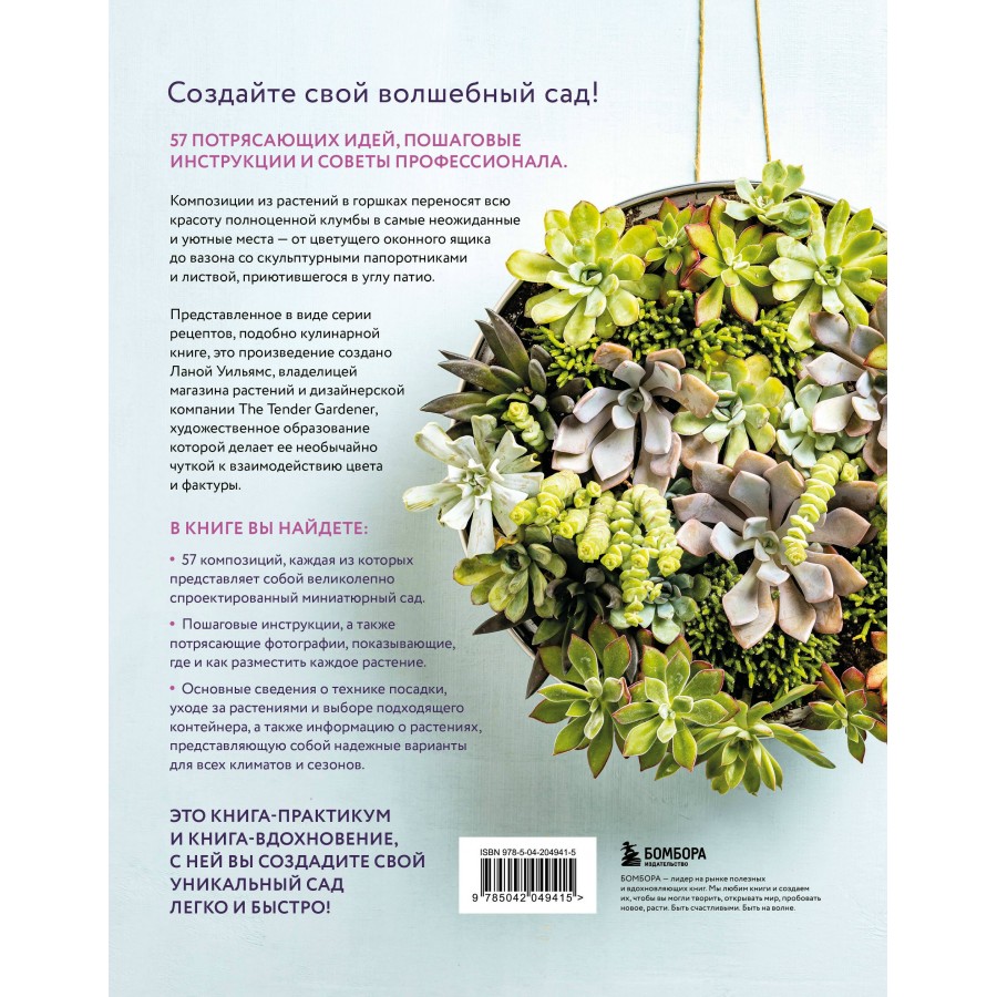 Создайте свой волшебный сад! Композиции из растений в горшках переносят всю красоту полноценной клумбы в самые неожиданные и уютные места — от цветущего оконного ящика до вазона со скульптурными папоротниками и листвой, приютившегося в углу патио. Представленная в виде серии рецептов, подобно кулинарной книге, и созданная Ланой Уильямс, владелицей магазина растений и дизайнерской компании The Tender Gardener, художественное образование которой делает её необычайно чуткой к взаимодействию цвета и фактуры, книга содержит 57 композиций, каждая из которых представляет собой великолепно спроектированный миниатюрный сад. «Рецепты» включают пошаговые инструкции, а также потрясающие фотографии, показывающие, где и как разместить каждое растение. Также включена основная информация о технике посадки, уходе за растениями и выборе подходящего контейнера, а также информация о растениях, представляющая собой надежные варианты для всех климатов и сезонов. Это книга-практикум и книга-вдохновение, с ней вы создадите свой уникальный сад легко и быстро!