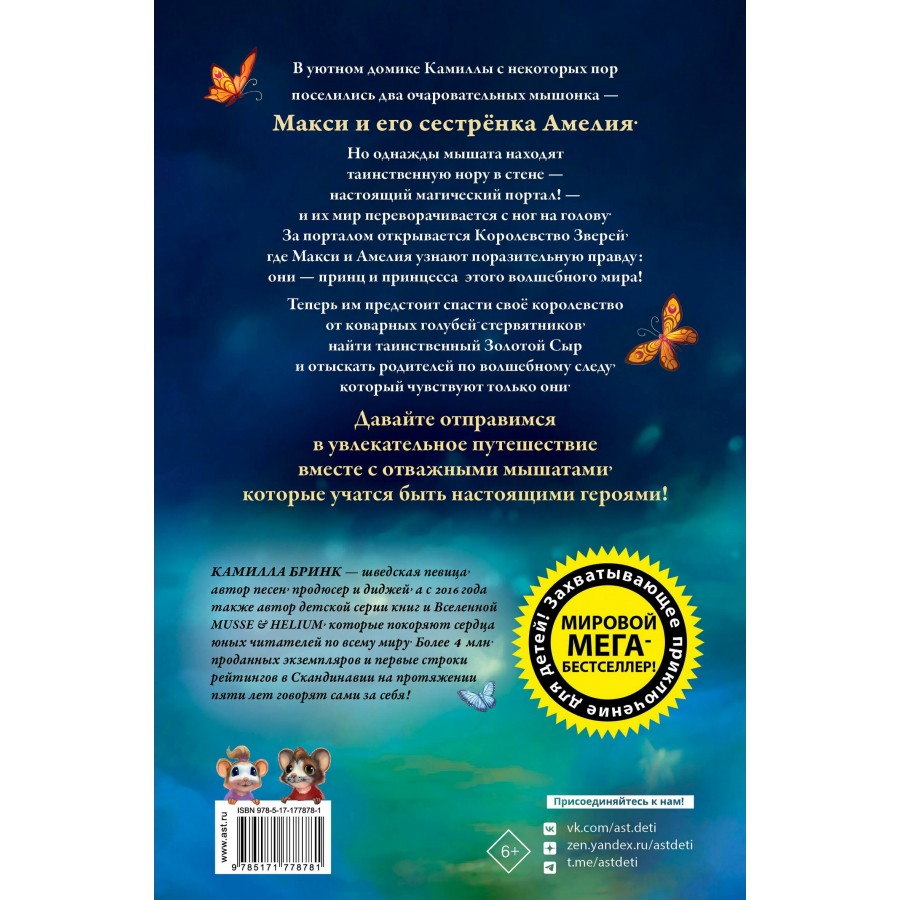 КАМИЛЛА БРИНК — шведская певица, автор песен, продюсер и диджей, а с 2016 года также автор детской серии книг и Вселенной Musse & Helium, которые покоряют сердца юных читателей по всему миру. Почти 4 млн. проданных экземпляров и первые строки рейтингов в Скандинавии на протяжении пяти лет говорят сами за себя!