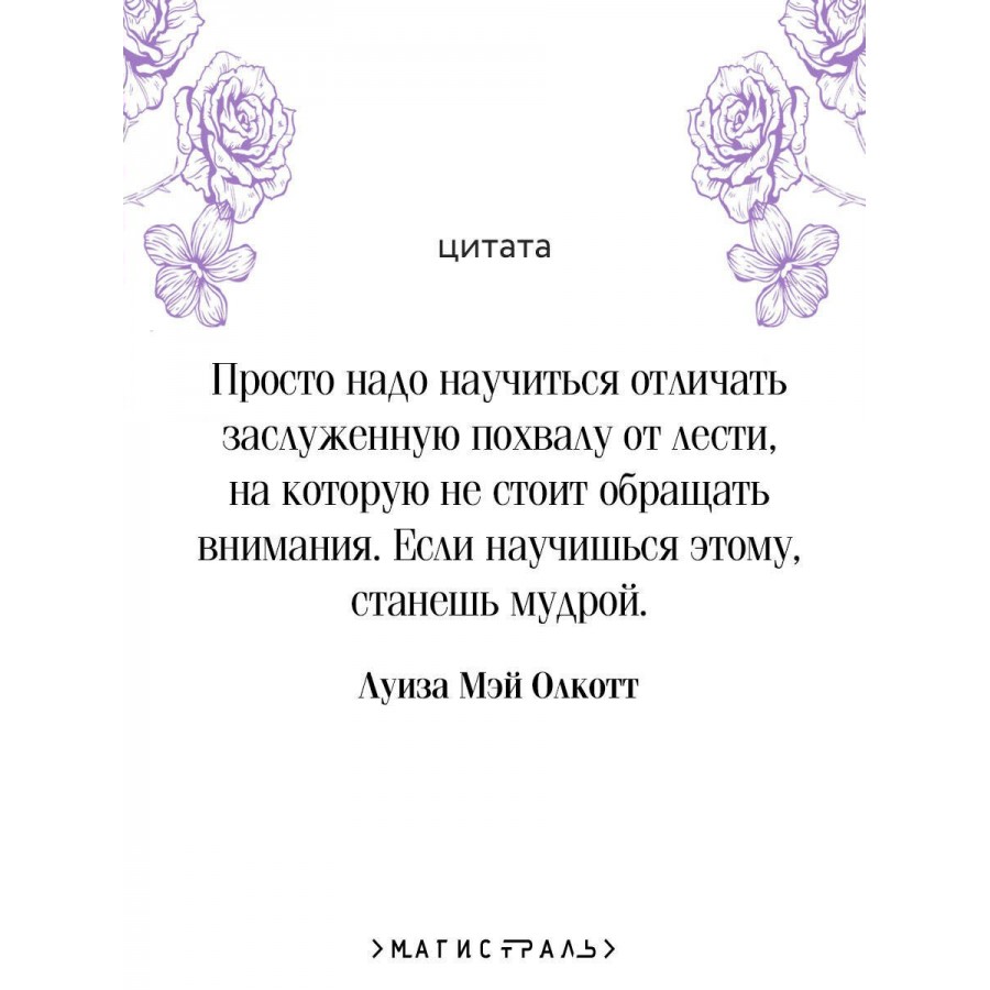 Олкотт писала о девушках и для девушек. На страницах этой книги юные красавицы увидят, как их ровесницы проживают актуальные для них проблемы, а молодые мамы снова окунутся в свое счастливое беззаботное детство, вспомнят свои веселые шалости, свою первую любовь.