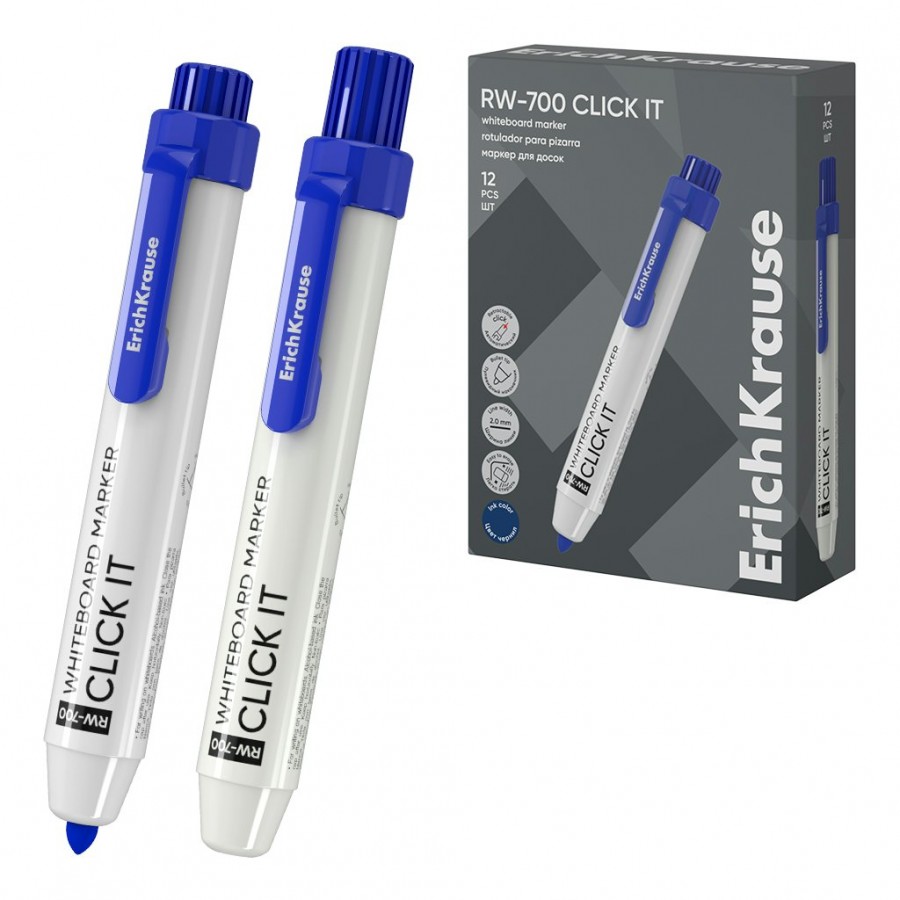 Маркер для доски RW-700 Click it 2мм синий, пулевидный 60831 ErichKrause 12/144