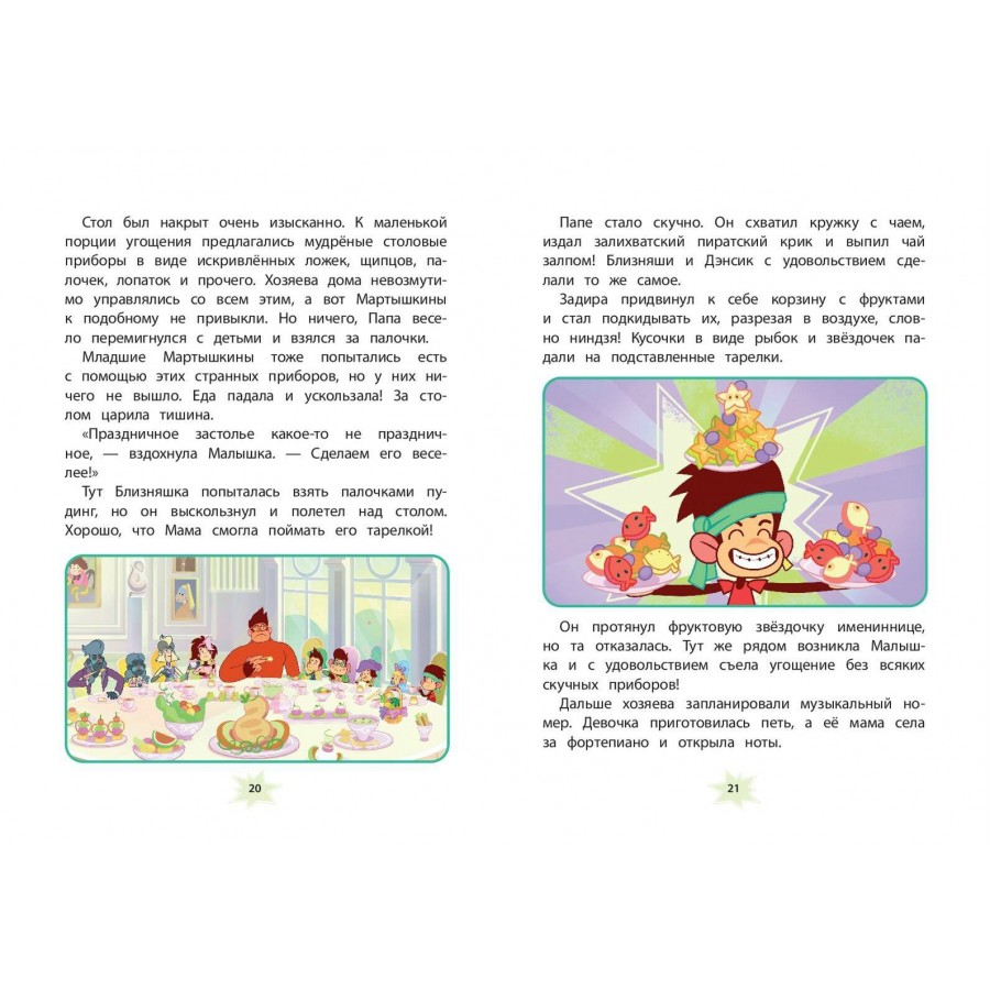 В этом сборнике — пять историй про весёлую семейку Мартышкиных на праздничную тематику! Простой и увлекательный стиль письма, яркая обложка и цветные кадры из сериала на каждом развороте точно понравятся детям 6—8 лет, причём как фанатам мультфильмов, так и еще не знакомым с семейкой читателям. А компактный формат позволяет взять книгу с собой в поездку или на прогулку, чтобы ребёнок точно не заскучал!