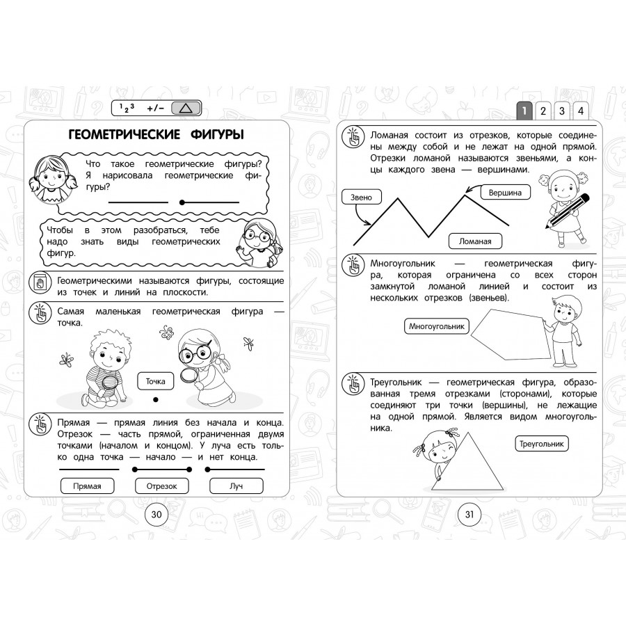 Правила математики объясняются в лёгкой и доступной форме, что позволяет ученикам начальной школы лучше усваивать информацию. На каждый конкретный вопрос даётся понятный и исчерпывающий ответ. Справочник хорошо структурирован, позволяет удобно и быстро ориентироваться по темам, поэтому станет универсальной шпаргалкой для подготовки к урокам.