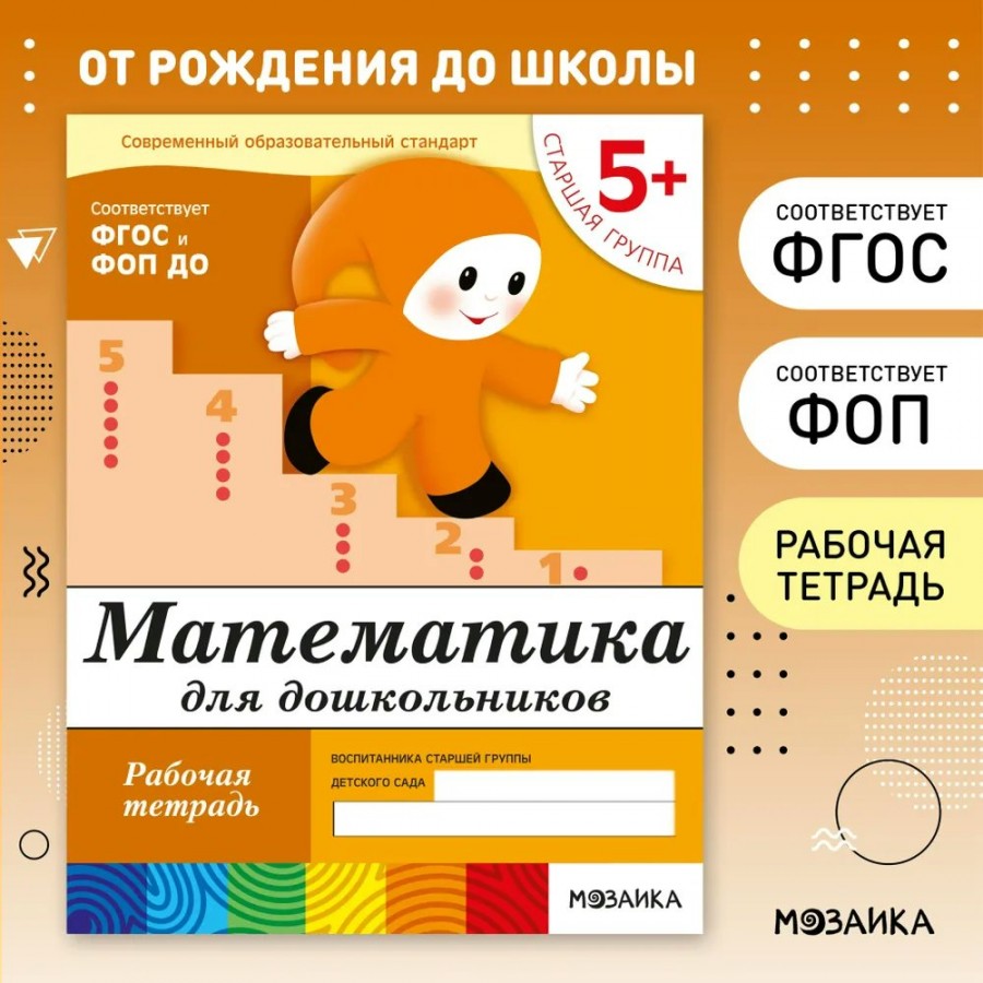 Математика для дошкольников. Рабочая тетрадь. Старшая группа. 5+. 2025. Денисова Д.,Дорожин Ю.