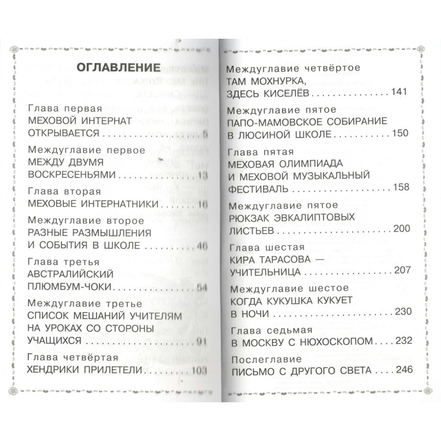 «Меховой интернат» — это весёлая сказочная повесть Э. Успенского о девочке Люсе Брюкиной, которая становит- ся учительницей в интернате для зверей. Вы знаете, что такое хендрики? Где живёт Мохнурка? Как научить зверей ру... Читать далее...