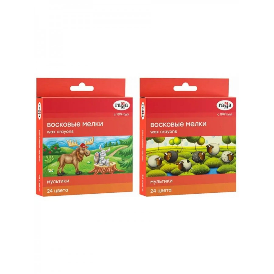 Набор из 24 цветных восковых мелков ГАММА серии «Мультики» отлично подойдёт для рисования на бумаге, картоне и любой шероховатой поверхности. Мелки имеют круглую форму, длина мелка составляет 90 мм, а диаметр корпуса — 8 мм. В наборе 24 ярких цвета. Мелки идеальны для первых начинаний ребенка в рисовании и раскрашивании, так как они удобно лежат в руке и не требуют сильного нажатия. Они производятся на основе натуральных растительных компонентов: воска и пигментов. Мелки не липнут к рукам и не пачкают их, не имеют выраженного химического запаха. Каждый мелок обёрнут в бумажную гильзу и уже заточен.