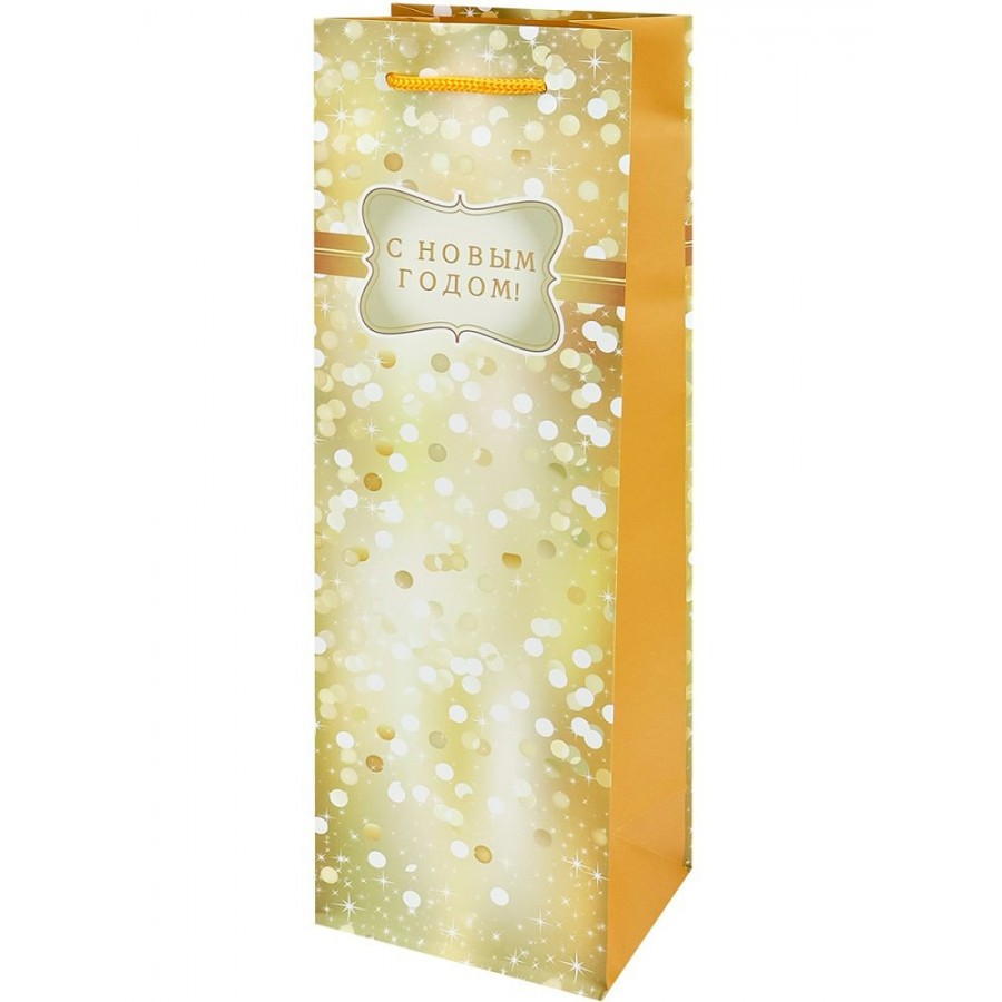 Миленд/Пакет бумажный ламинированный под бутылку. С Новым годом. Золотистый/120 х 360 х 85/ППК-2269/