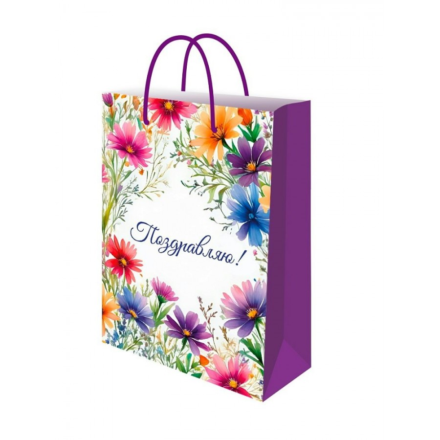 Миленд/Пакет бумажный ламинированный. Поздравляю. Цветы 140 х 200 х 65 см/ППК-2740/