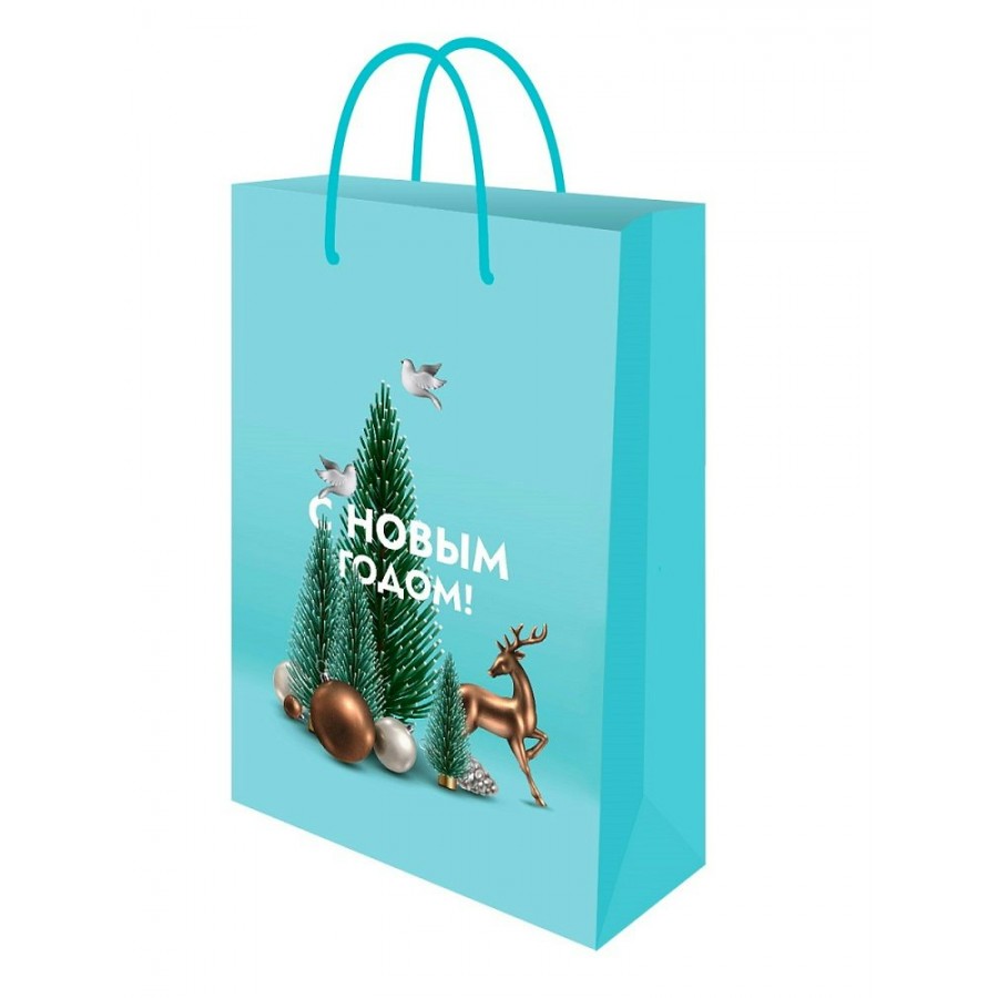Миленд/Пакет бумажный ламинированный. С Новым годом. Бирюзовый с елкой/140 х 200 х 65/ППК-2283/