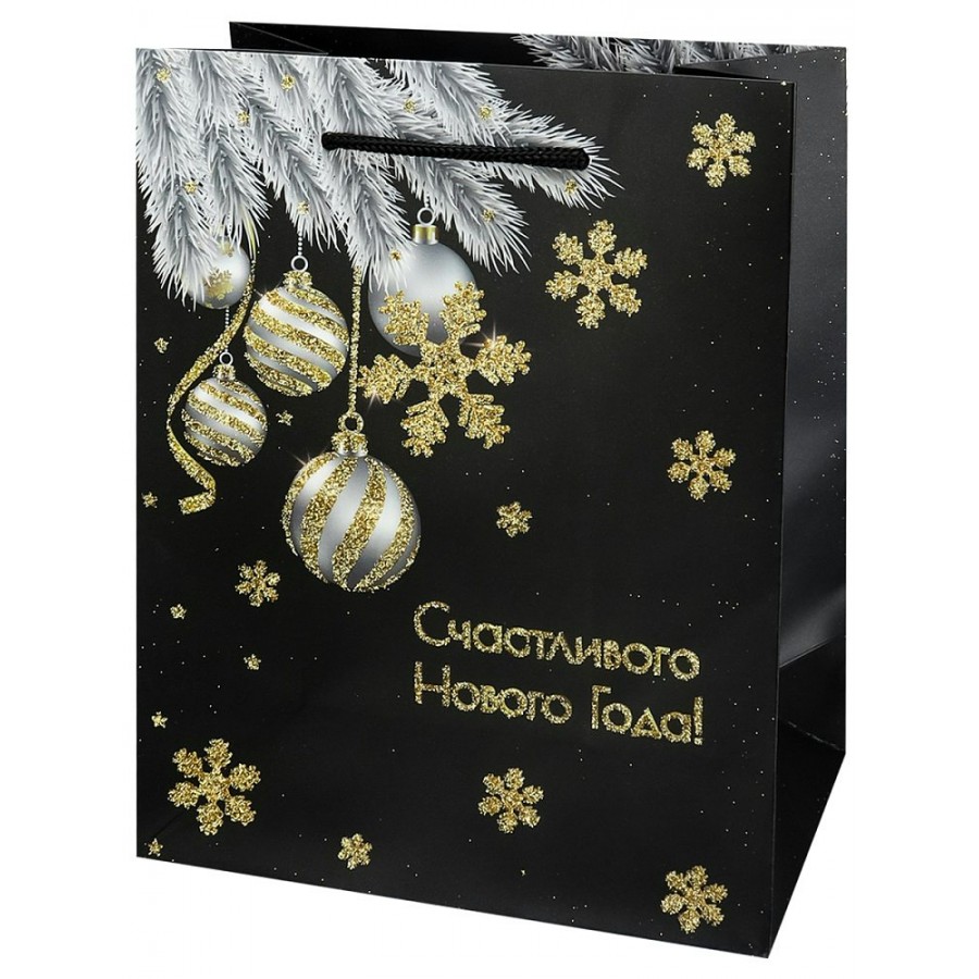 Миленд/Пакет бумажный ламинированный. Счастливого Нового года. Новогодние ветки/180 х 230 х 100/ППК-2304/