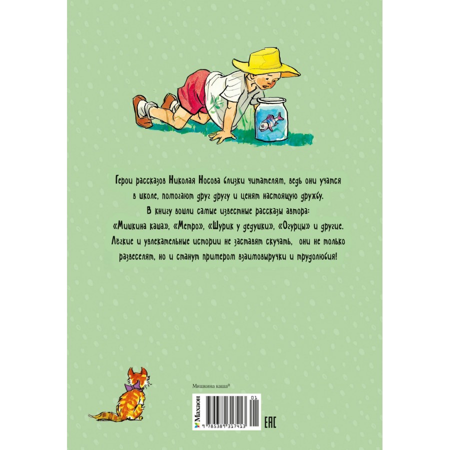 Герои рассказов Николая Носова близки читателям, ведь они учатся в школе, помогают друг другу и ценят настоящую дружбу. В книгу вошли самые известные рассказы автора: «Мишкина каша», «Метро», «Шурик у дедушки», «Огурцы» и другие. Лёгкие и увлекательные истории не заставят скучать, они не только развеселят, но и станут примером взаимовыручки и трудолюбия!