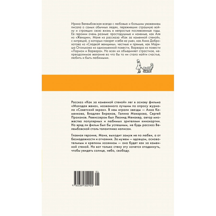 Рассказ «Как за каменной стеной» лег в основу фильма «Молодая жена», названного лучшим по опросу журнала «Советский экран». В нем играли звезды — Анна Каменкова, Владлен Бирюков, Галина Макарова, Сергей Проханов. Режиссером был Леонид Менакер, автор множества популярных и любимых зрителями кинокартин. Но вряд ли фильм был бы успешным, не будь рассказ Велембовской столь талантливо написан.