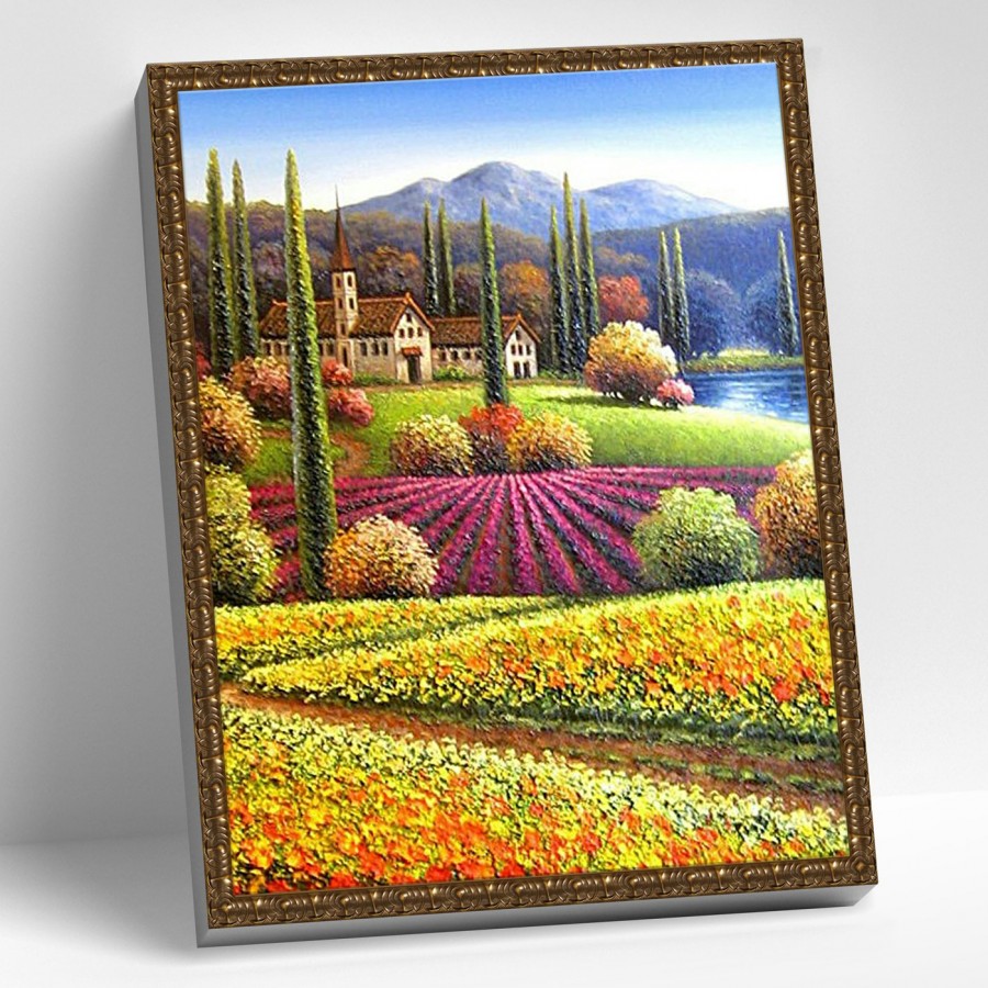 Мозаика алмазная холст на подрам. 40х50 Тосканские домики с нанес. рамкой 34цв KC0014 Молли