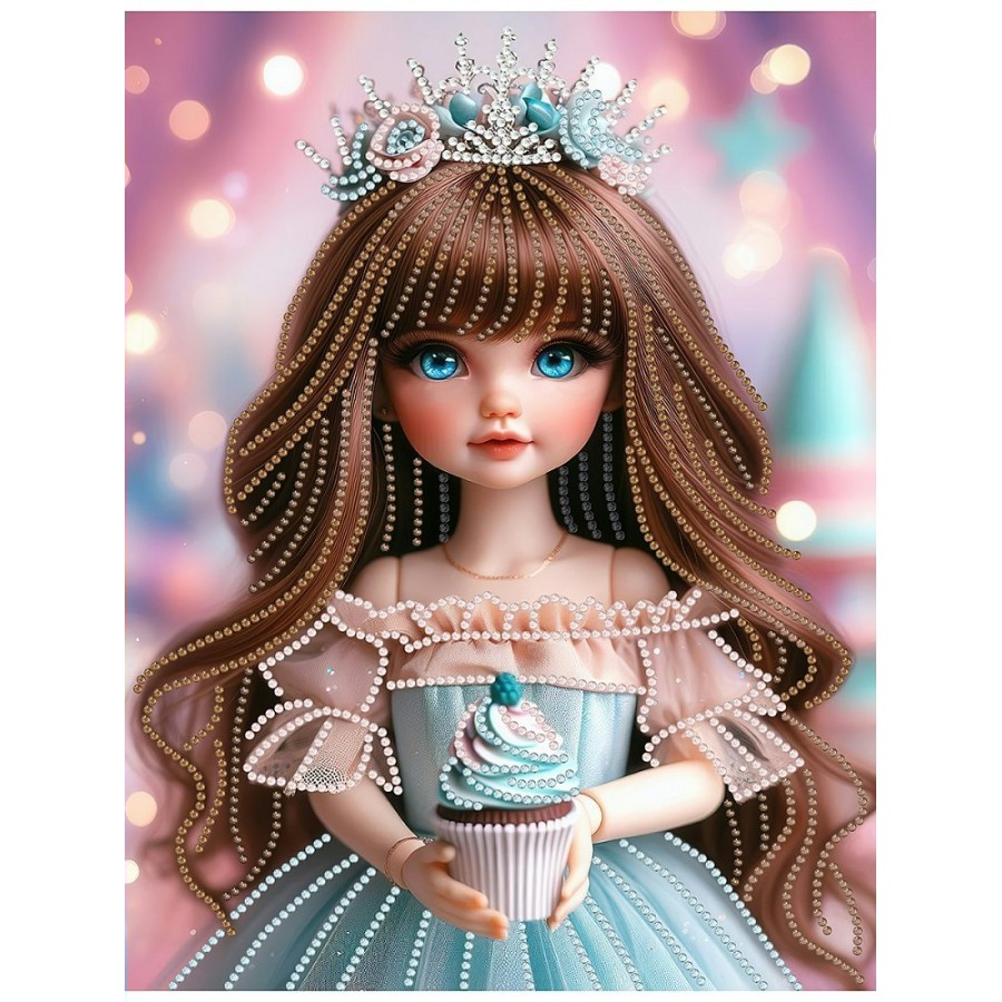 Мозаика алмазная холст на подрамнике 23х30 Куколка с капкейком блестящая, частичная выкладка, 10 цветов НД-1568 Рыжий кот