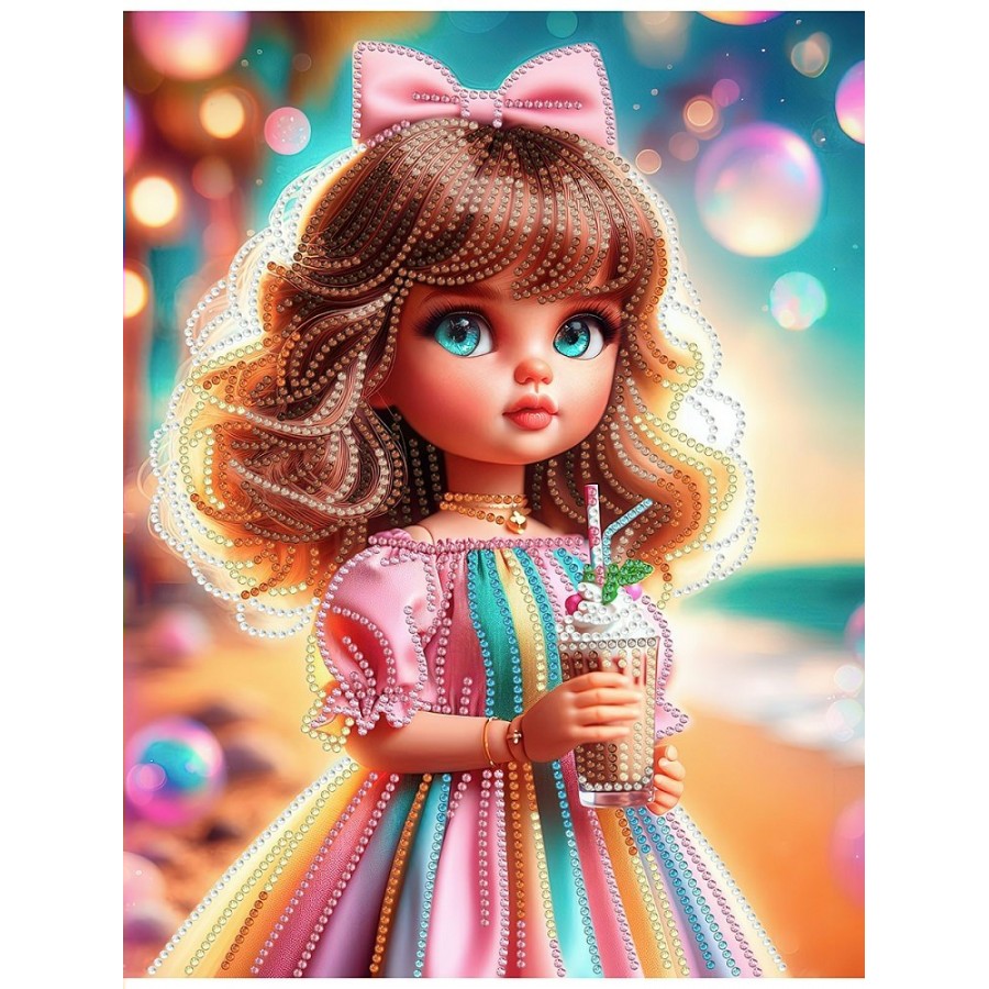 Мозаика алмазная холст на подрамнике 23х30 Куколка с коктейлем блестящая, частичная выкладка, 10 цветов НД-1570 Рыжий кот